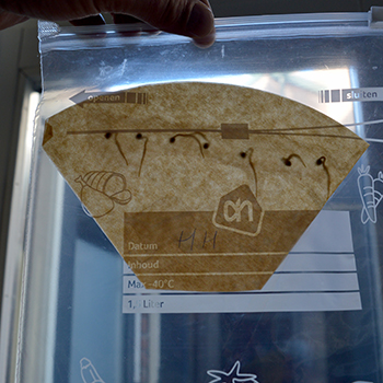 Om wietzaden 100% succesvol te ontkiemen, heb je een koffiefilter nodig en een plastic gripzak, diepvieszakken zijn hier ideaal voor. Neem een koffiefilter en maak die nat onder de kraan. Laat het filterpapier even uitdruppelen en vouw het koffiefilter open. Doe de wietzaden hiertussen zodat ze tussen twee lagen filterpapier zitten, en doe het natte filter met de zaden erin, in je plastic gripzak. Hang het plastic zakje in het donker verticaal op aan de binnenkant van een kastje, en binnen twee tot drie dagen zullen je wietzaden ontkiemd zijn.