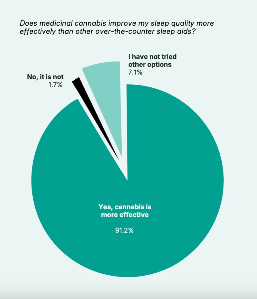 Vergeleken met vrij verkrijgbare slaapmiddelen vond 91,2% van de ondervraagden dat medicinale cannabis effectiever was, terwijl slechts 1,7% het daar niet mee eens was.