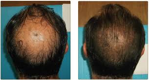 Haargroei bij mannelijke deelnemer aan de studie: links de beginsituatie, rechts die na een half jaar