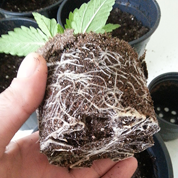 Wanneer je een wietplant van de ene pot naar de andere pot verplaatst, noemen we dat ook wel verpotten. Het eerste potje is na een week of twee te klein geworden en dus verpot je het naar een grotere pot, zodat het verder kan groeien.