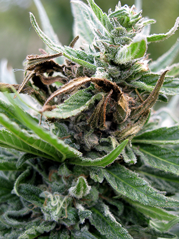 Als je niet veel witte haartjes meer ziet, kun je je wietplant gaan oogsten. Foto: Artazum, Shutterstock
