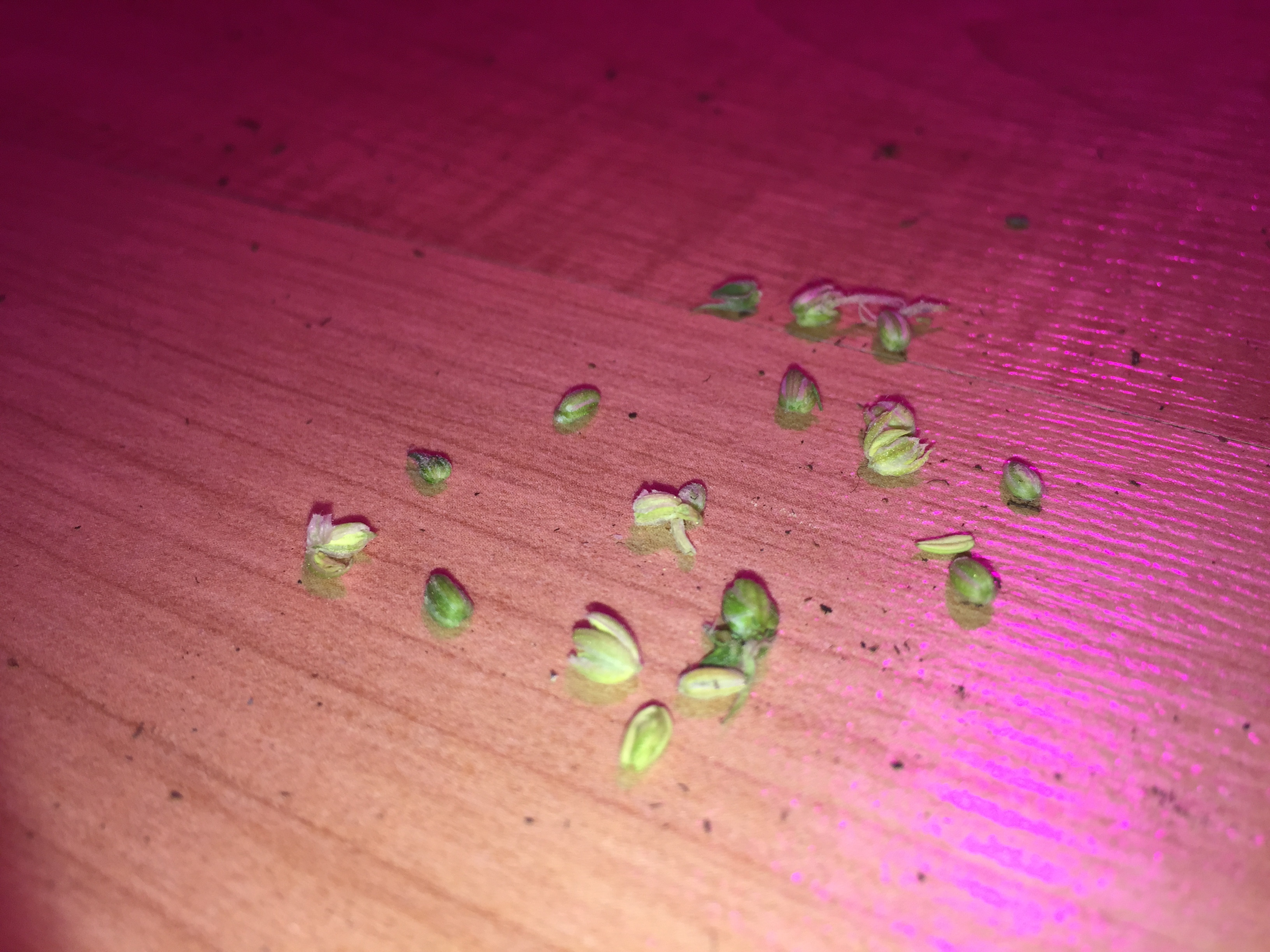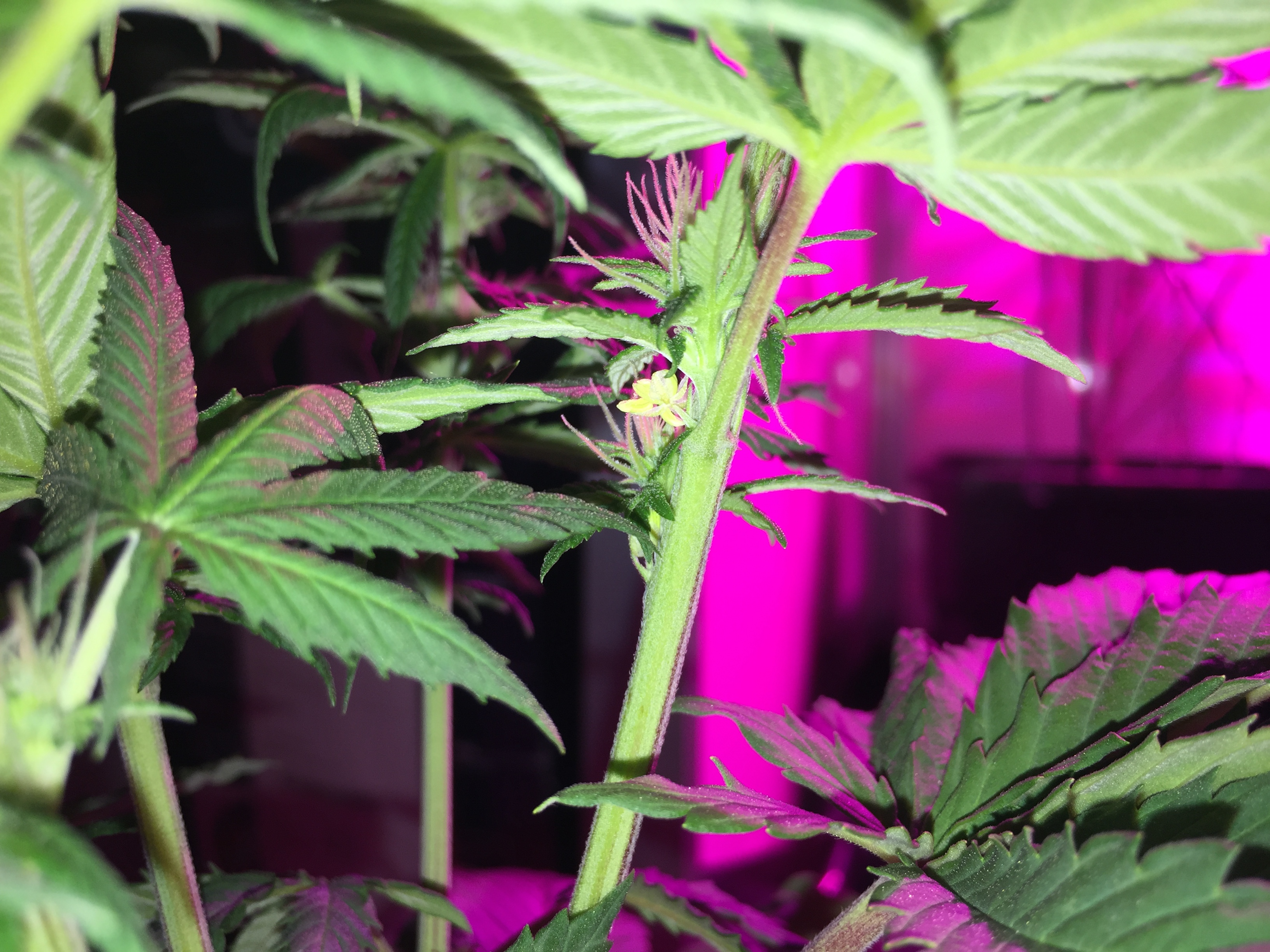 Zoals het hoort haalde ik de dagen erna elke dag de planten één voor één uit de kast om ze grondig te inspecteren op het wel of niet bezitten van deze bloemen. Nog eentje kwam ik er tegen, maar *klopt af* verder lijken de planten weer normaal vrouwelijk te ontwikkelen.