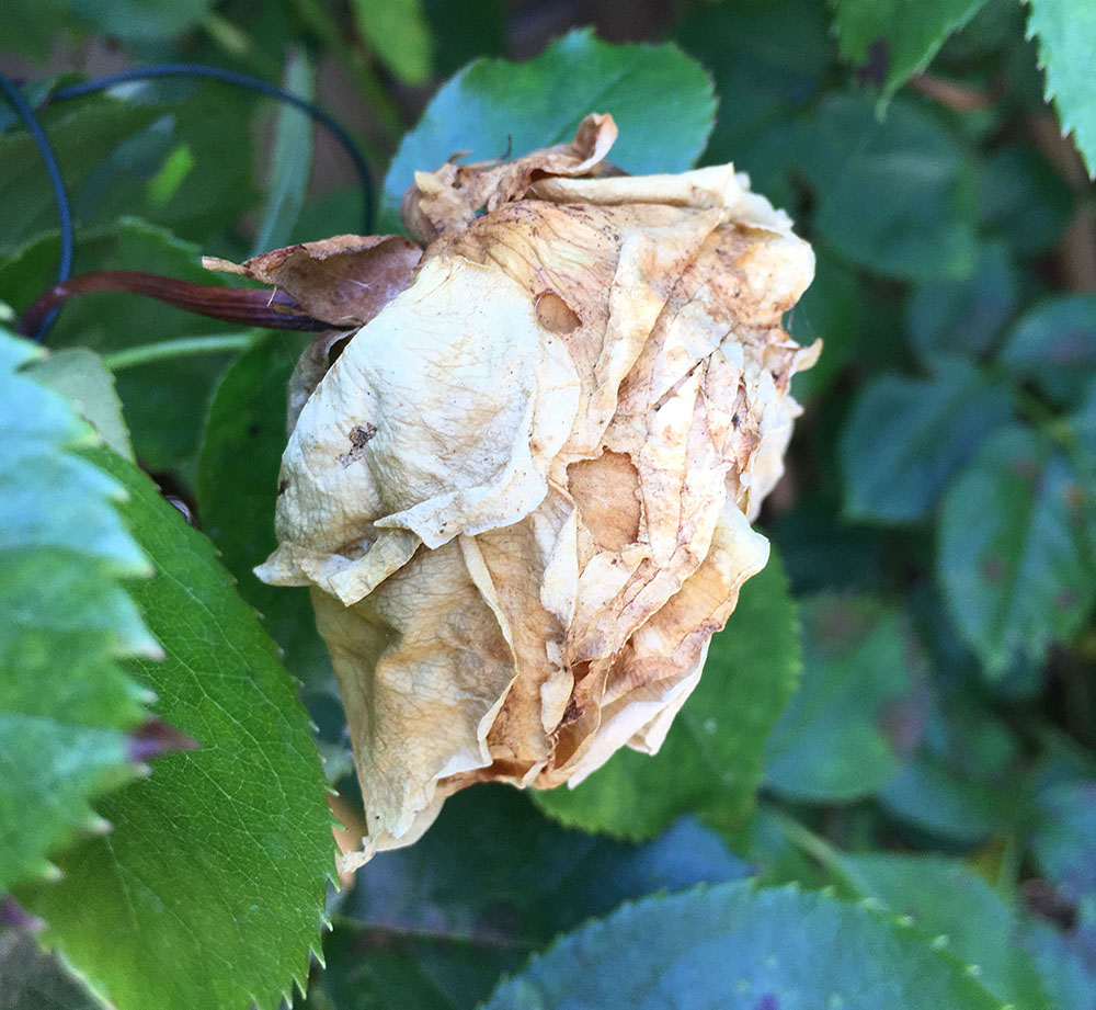 Slechts 5 dagen later was er niks van de schoonheid van een roos over. De roos is compleet verrot en overgenomen. Zo snel kan het dus gaan.