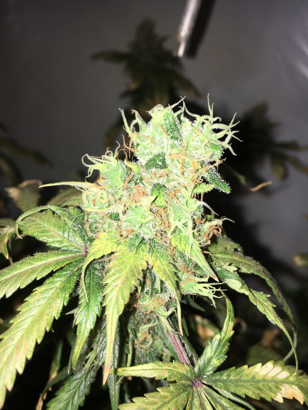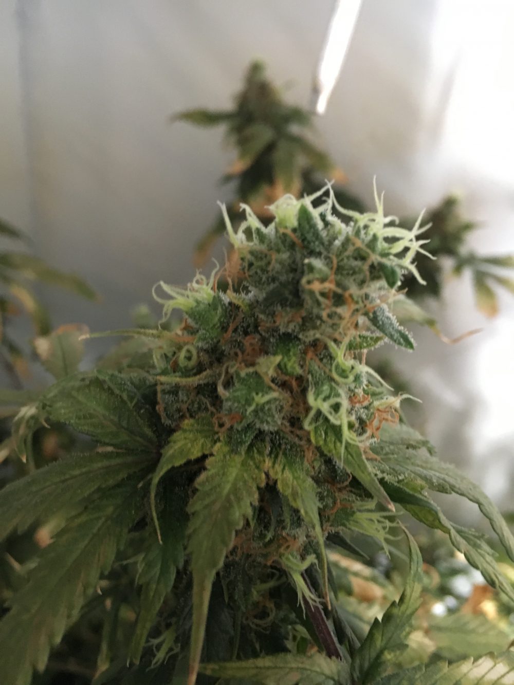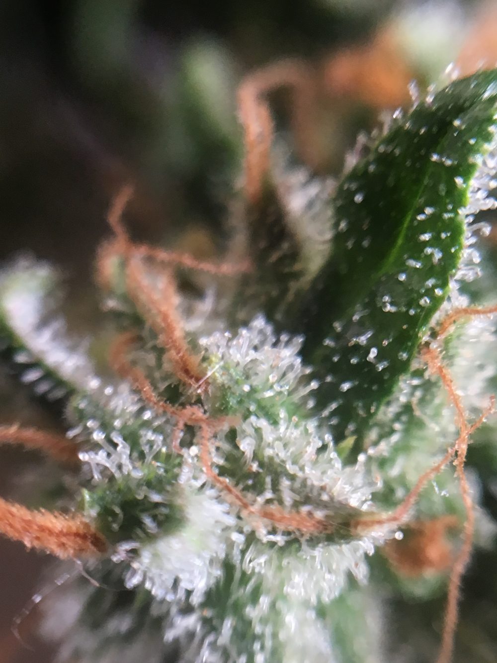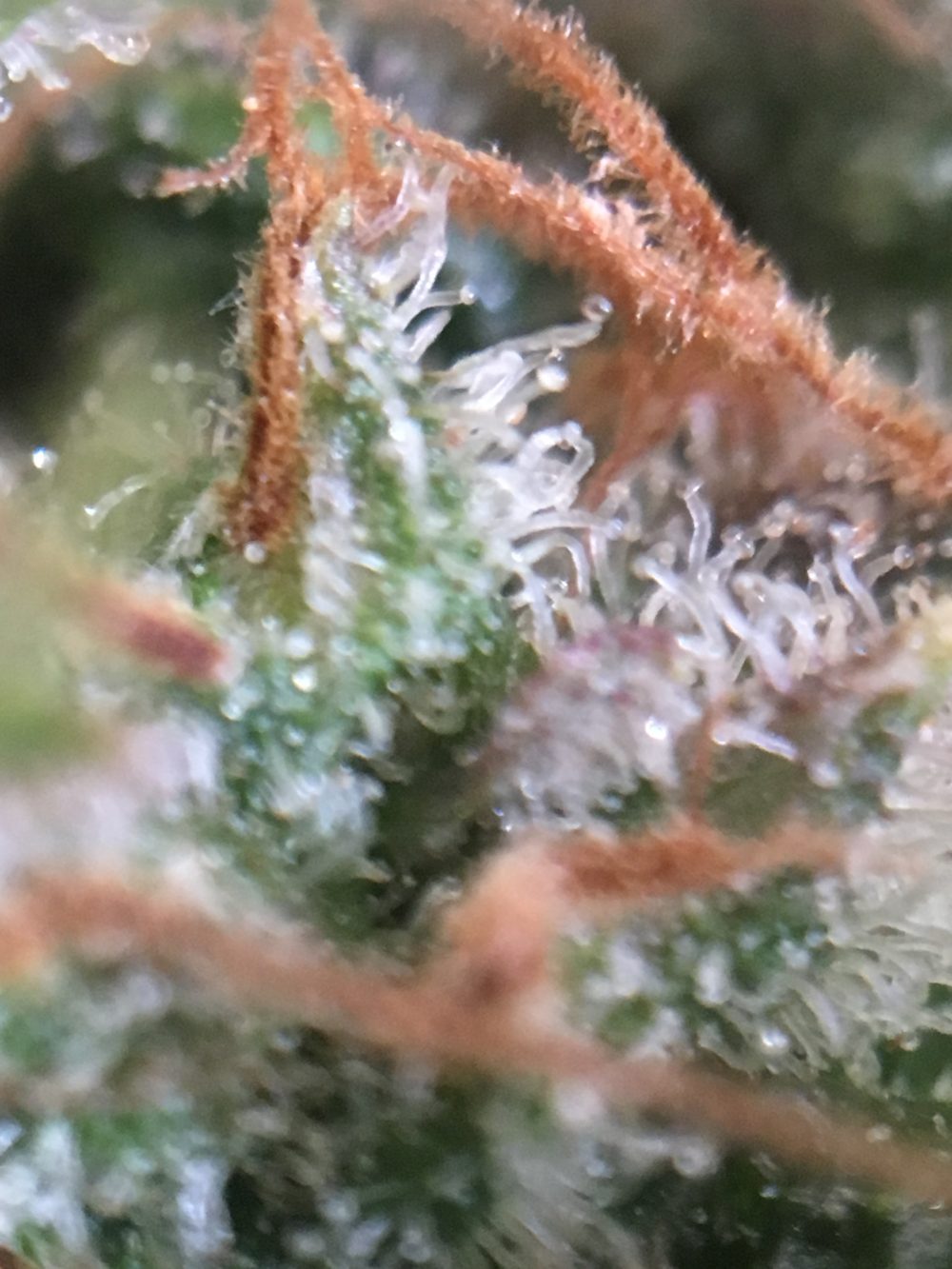 Bij mijn planten komen overal nog nieuwe haartjes uit. Dit is voor mij een teken dat de plant nog niet klaar is met bloeien. Ik hoop binnenkort tegen de oogst betere foto’s te kunnen nemen van de trichomen, zodat ik jullie precies kan laten zien wanneer een trichoom en dus de wiet rijp is.