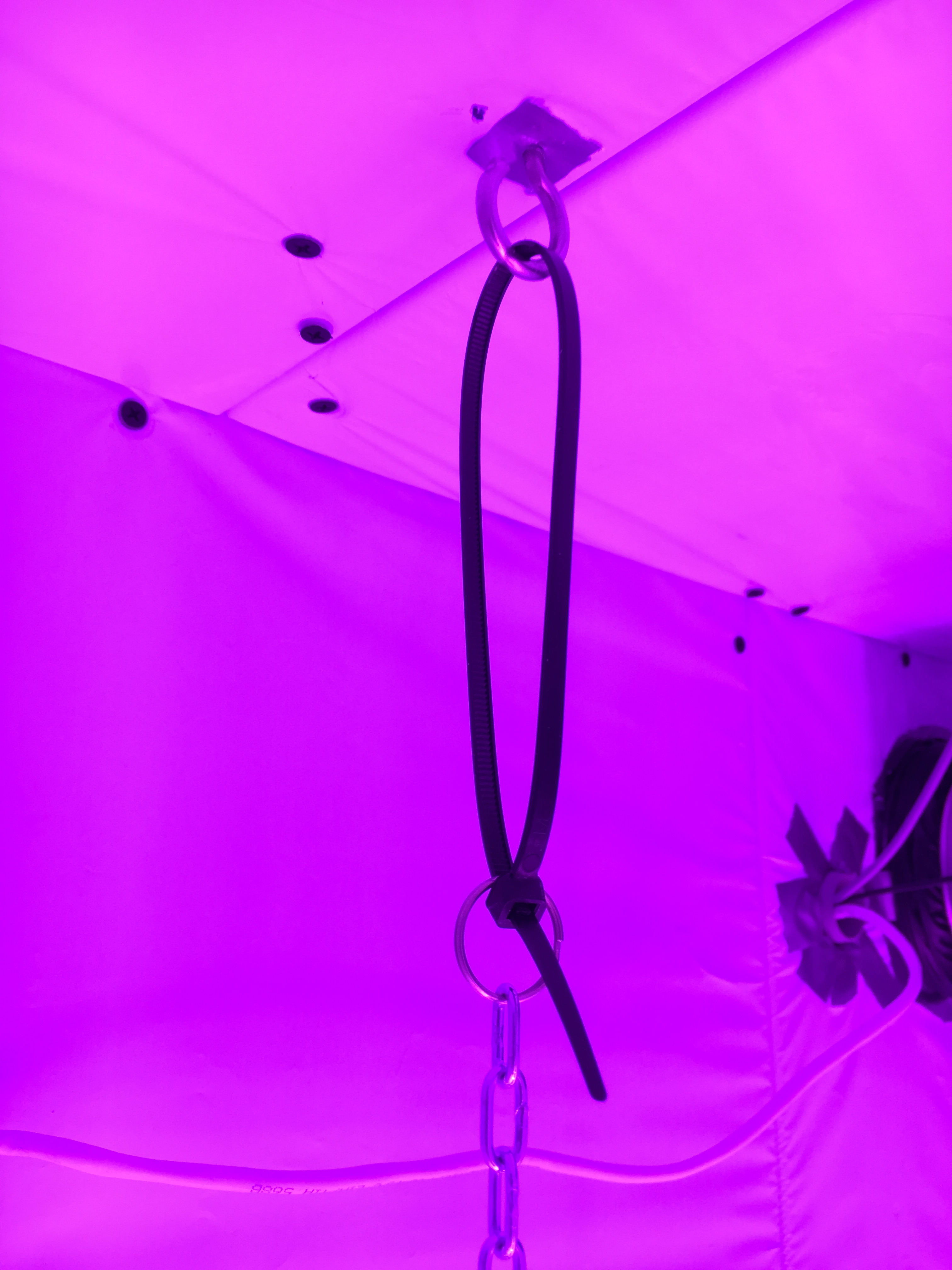 Ik heb de zak boven de planten gehangen, want de CO2 is zwaarder dan normale lucht; het zakt dus naar beneden langs de planten. Door het toevoegen van de CO2 kan mijn temperatuur ook weer terug naar de +- 28 graden die voor mij makkelijker te behouden is. Door het toevoegen van CO2 kunnen je planten soms wel tot 5 graden temperatuursverhoging verdragen. Houd er echter wel rekening mee dat de planten ook iets meer water en voeding verbruiken als ze meer CO2 krijgen.