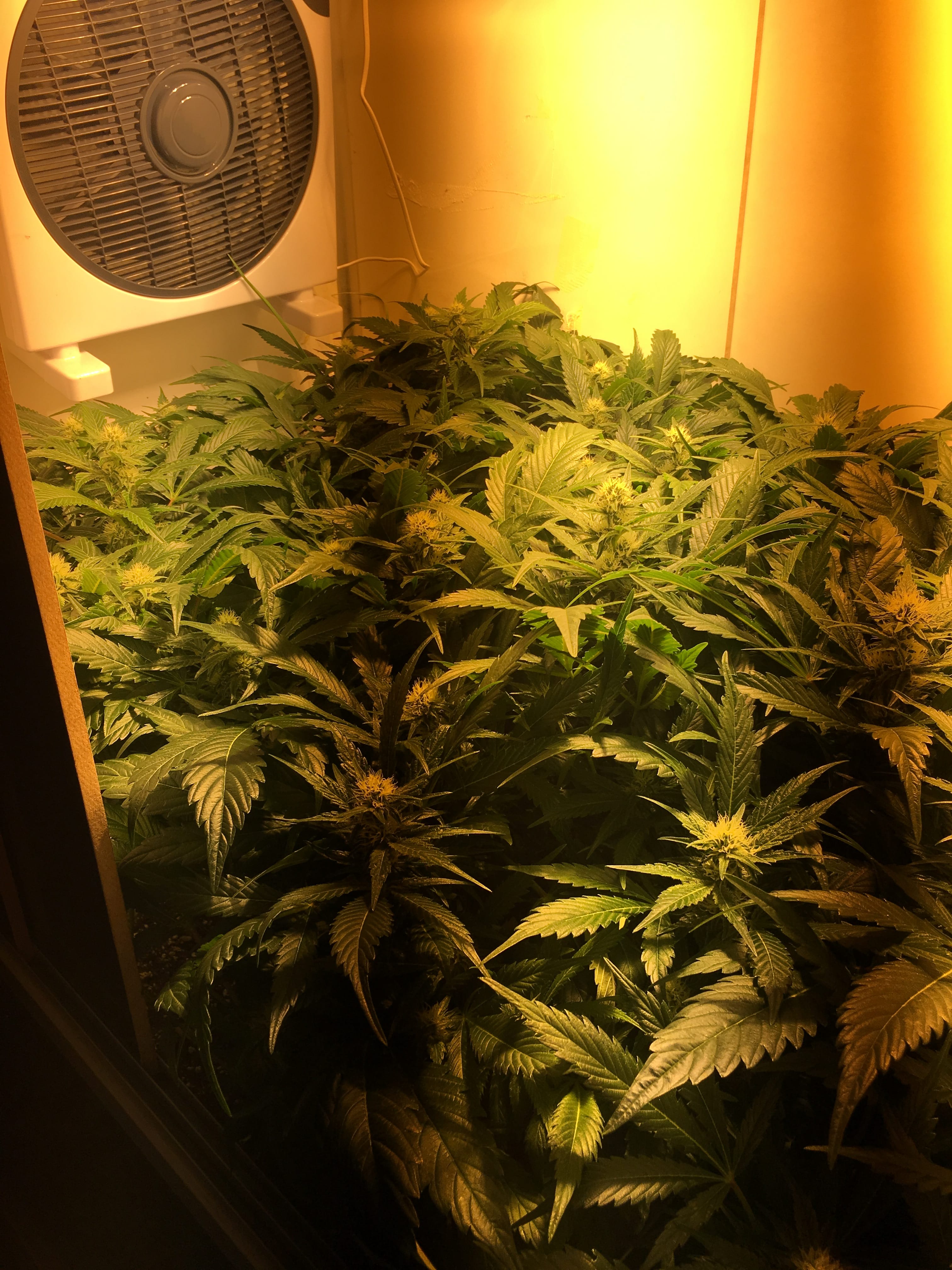@sativa ik bloei alles af onder hps, de voor groei doe ik voornamenlijk onder t-neon om de planten compact te houden(hps heeft meer rood in het licht waardoor ze meer strekken) ik heb er momenteel 400 watt boven hangen en volgende week komt er 600 watt boven.