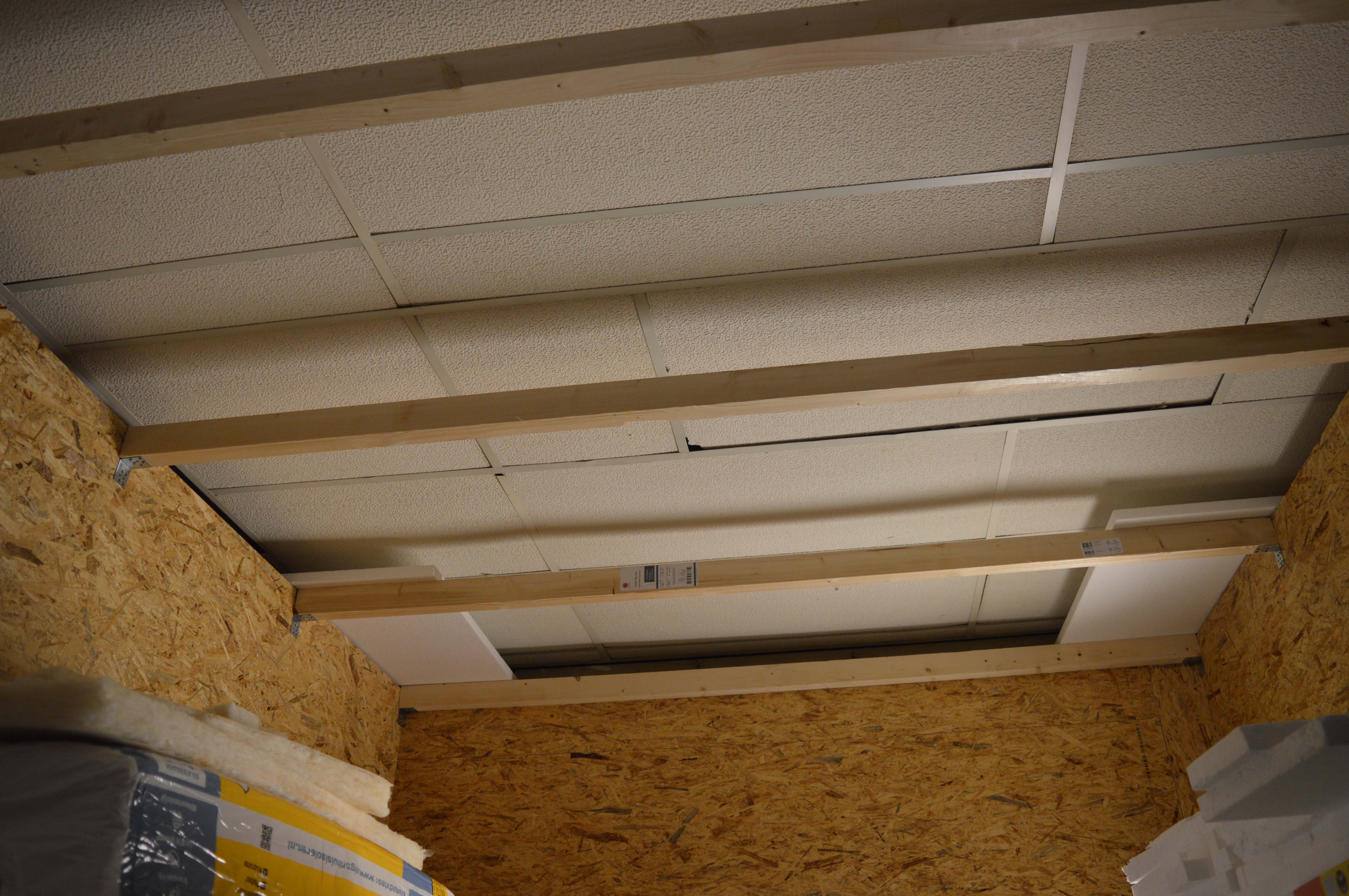 nu dat klaar is gaan we verder met het plafond we hebben op verschillende plaatsen balken gemonteerd veer extra stevigheid.