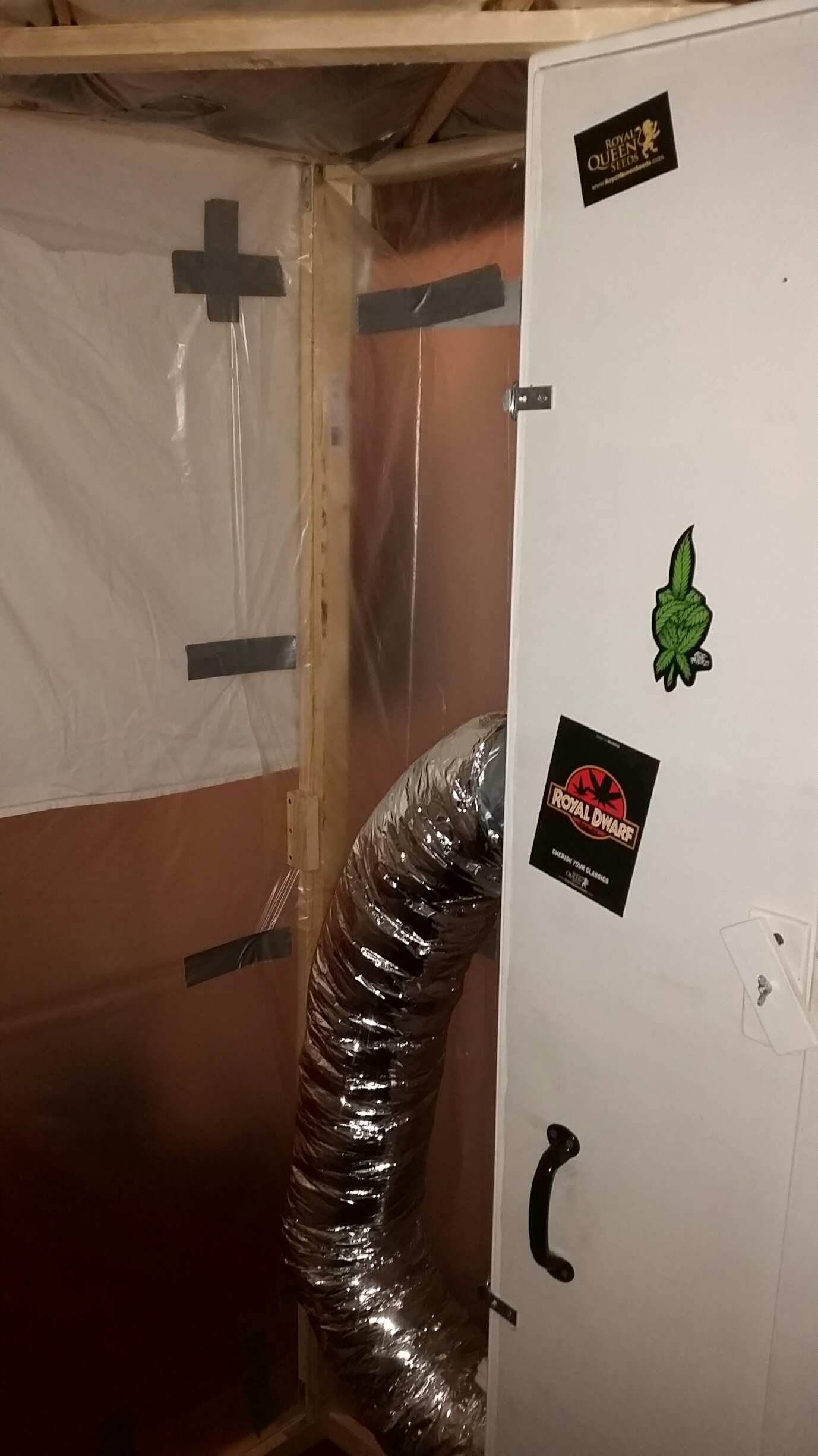 Ik kan naar wietplanten kijken alsof ik in een kampvuur staar dus heb ervoor gekozen om een raam te plaatsen in mijn deur. Hierdoor kan ik rustig naar mijn hobby/medicijn kijken zonder het klimaat in de kast aan te tasten en de boel stabiel te houden. Zeker bij een kleine kast zoals deze fluctueert dat nogal als je even de deur open doet. Dat hoeft zo niet meer als ik even wil kijken en maakt het openen van de deur alleen noodzakelijk als er werkzaamheden uitgevoerd moeten worden. Deze heb ik netjes met een plaat ervoor gemaakt zodat ik de kast wel volledig lichtdicht heb als ik niet wil kijken.